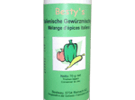 Pfeffer, Paprika, Muskatnuss, Zwiebeln, Backtriebmittel: Natron, Käseklee, Knoblauch, Koreander, Kurkuma, Cayennepfeffer, Bockshornklee.
